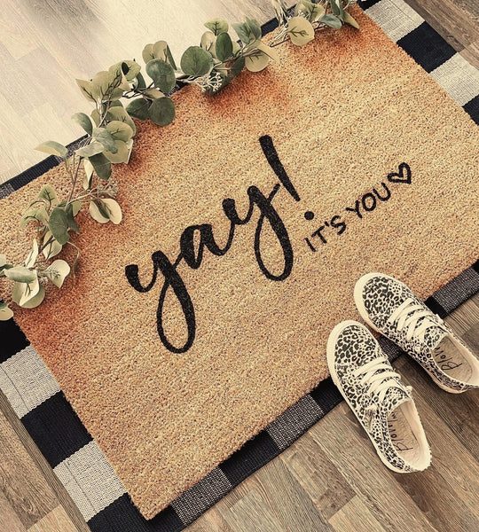 Sure, you can stomp on it, but we don't recommend it! Our doormats are a renewable and natural product and not meant to last a lifetime. They are hand painted with multiple layers of premium paint and sealed with a UV/water resistant sealer. Heavy foot traffic will cause the doormat to wear more quickly. The lighter the foot traffic the longer the font crispness will last. We recommend a covered entrance and keeping the doormat dry, away from direct rain/snow and salt. As the doormat is made of natural coconut husk, water will cause the doormat to swell and shed.